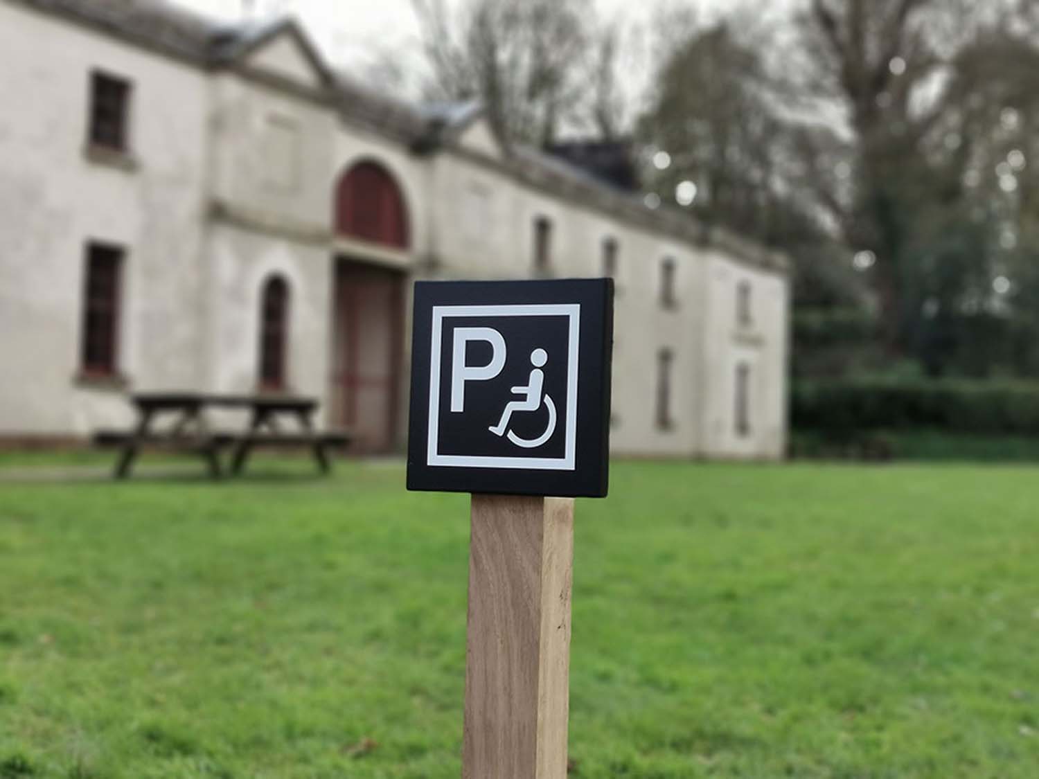 Using sustainably sourced hardwoods — most commonly native Irish oak — we create signage that is both robust and beautifully understated. Over time, these materials weather naturally, developing a soft silver-grey patina that allows the signage to blend seamlessly into woodland, parkland, and heritage settings.