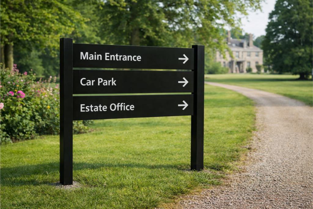 Clear, consistent wayfinding is essential in any estate or visitor environment. We design complete signage systems that guide visitors intuitively while enhancing their overall experience.